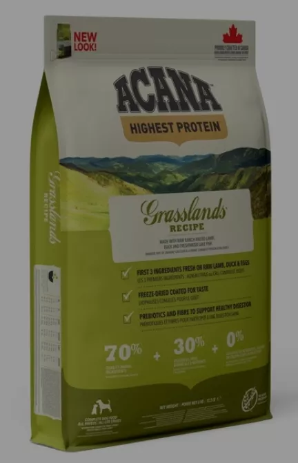 ACANA GRASSLANDS OBSAHUJE MASO Z VOLNĚ CHOVANÝCH JEHŇAT, KACHEN A KRŮT, VEJCE Z HNÍZDNÍCH CHOVŮ A RYBY, VŠE DODÁVANÉ ČERSTVÉ NEBO SYROVÉ Z NAŠEHO REGIONU V PODÍLU CELÉ KOŘISTI, COŽ DODÁVÁ ŽIVINY PŘIROZENĚ, BEZ POTŘEBY DLOUHÉHO SEZNAMU UMĚLÝCH DOPLŇKŮ. S NÍZKÝM OBSAHEM SACHARIDŮ A VYSOKÝM OBSAHEM ŽIVOCIŠNÝCH PROTEINŮ PRO DOSAŽENÍ VRCHOLOVÉ KONDICE.