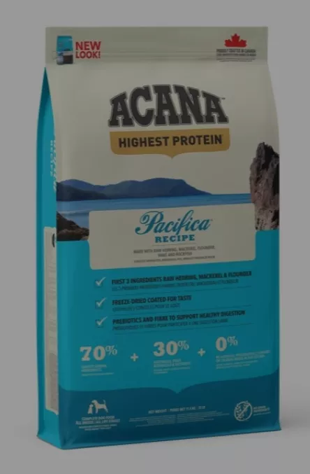 SLOŽENÍ: Celý syrový sleď (14 %), celá syrová makrela (11 %), syrový platýs (9 %), dehydrovaný sleď (7 %), dehydrovaná makrela (7 %), dehydrovaná treska modravá (7 %), celý zelený hrách, celá červená čočka, celá cizrna, celá zelená čočka, rybí olej (6 %), syrový celý hejk (4,5 %), celý syrový okouník (4,5 %), celé fazole pinto, celý žlutý hrách, hráškový škrob, slunečnicový olej, vláknina z čočky, sušená řasa, mrazem sušená treska obecná a játra, celá čerstvá dýně, čerstvá celá máslová dýně, čerstvá celá mrkev, celá čerstvá jablka, čerstvé celé hrušky, čerstvá celá cuketa, sušený kořen čekanky, čerstvá kapusta, čerstvý špenát, čerstvé listy tuřínu, čerstvé listy červené řepy, celé brusinky, celé borůvky, celé plody muchovníku, kurkuma, ostropestřec, kořen lopuchu, levandule, kořen ibišku, šípky.