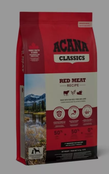 Složení kvalitních granulí pro psy s hovězím a jehněčím masem ACANA Classic Red Meat: Syrové hovězí maso (16 %), dehydrované jehněčí maso (15 %), slzovka obecná, celý hrášek, ovesné kroupy, vepřový tuk (8 %), dehydrované vepřové maso (8 %), celý oves, cizrnová vláknina, syrové vepřové maso (2 %), rybí tuk (1%), chlorid draselný, sušená chaluha, sůl, sušený kořen čekanky, celá čerstvá dýně, čerstvá celá máslová dýně, čerstvá celá mrkev, celá čerstvá jablka, čerstvé celé hrušky, čerstvá celá cuketa, čerstvá kapusta, čerstvý špenát, čerstvé listy tuřínu, čerstvé listy červené řepy, celé brusinky, celé borůvky, celé plody muchovníku, kurkuma, ostropestřec, kořen lopuchu, levandule, kořen ibišku, šípky.