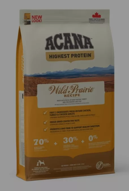 VYROBENO V KANADĚ. ACH: Champion Petfoods LP, 26615 92 Avenue, Acheson, Alberta, Canada, T7X 2V9, CA: ABP-226. MVL: Champion Petfoods LP, 9503 – 90 Avenue, Morinville, Alberta, Canada T8R 1K7, CA: CD11. Viz číslo lot: MVL, ACH. DOVOZCE: Miroslav Weber – Mlýn, Masarykova 159, 268 01 Hořovice, orijen@acana.cz, www.acanaorijen.cz., Reg. číslo: CZ 800074-01, číslo šarže, registrační číslo kuchyně a minimální trvanlivost: viz horní část pytle. Uchovávejte v chladu a suchu. Dávkování: viz informace na obalu.