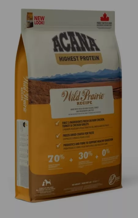 ACANA WILD PRAIRIE JE PLNÁ VOLNĚ CHOVANÝCH KUŘAT, KRŮT, CELÝCH VAJEC Z HNÍZDNÍCH CHOVŮ A VOLNĚ LOVENÝCH RYB, DODÁVANÝCH ČERSTVÉ NEBO SYROVÉ Z NAŠEHO REGIONU V PODÍLU CELÉ KOŘISTI, COŽ DODÁVÁ ŽIVINY PŘIROZENĚ, BEZ POTŘEBY DLOUHÉHO SEZNAMU UMĚLÝCH DOPLŇKŮ. S NÍZKÝM OBSAHEM SACHARIDŮ A VYSOKÝM OBSAHEM ŽIVOCIŠNÝCH PROTEINŮ PRO DOSAŽENÍ VRCHOLOVÉ KONDICE.