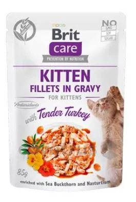 Kočičí jídelníček by měl být pestrý, chutný a zdraví prospěšný. Lahodná Brit Care kapsička poslouží jako kompletní krmivo nebo jako doplněk k suchému krmivu pro zvýšení rozmanitosti a chuti. Je vhodná zejména pro velmi vybíravé kočky nebo kočky s problematickým příjmem krmiva. Díky přidanému rakytníku a lichořeřišnici pomáhá v prevenci proti chorobám močových cest.