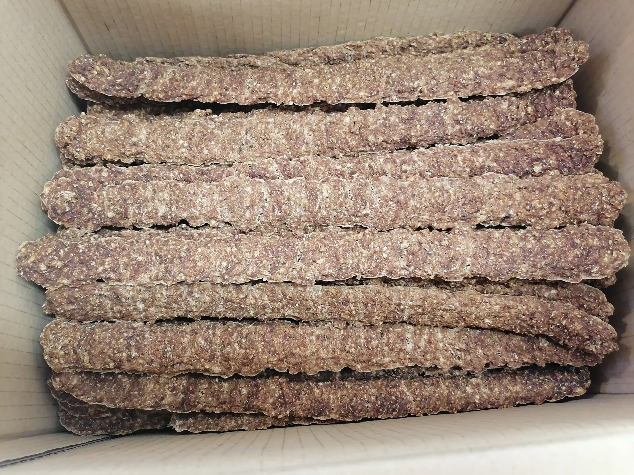 Složení: zvěřinové maso mleté, ovesné vločky, jablko, přírodní glycerin, kyselina sorbová. Skladování: Skladujte při teplotě 10 až 24 °C, na suchém místě, mimo dosah přímých slunečních paprsků. Spotřebujte do 3 měsíců – datum vyznačeno na obalu. Výrobce: Gordian Investments s.r.o.,Karlovarská 26, 273 51 Pavlov, reg. č.:CZ21717693, www.peyda.cz
